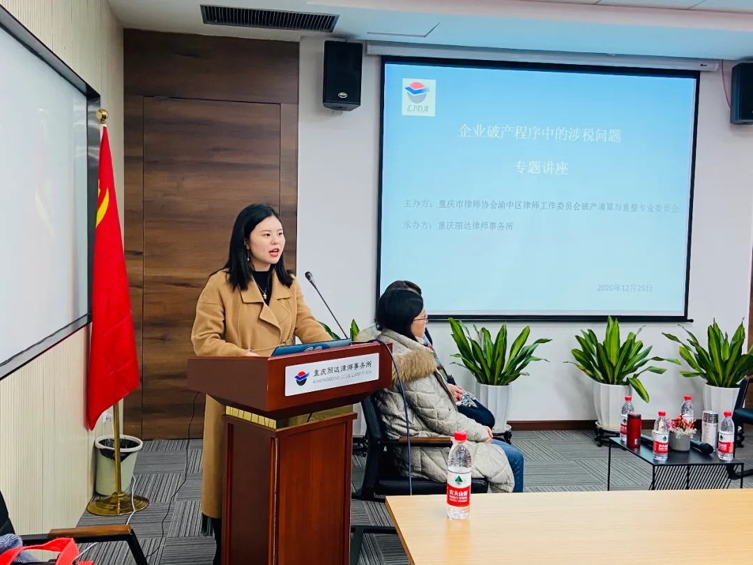 2020Äê12ÔÂ25ÈÕÏÂÎ磬ÓåÖÐÇøÂɹ¤Î¯ÆÆ²úÇåËãÓëÖØÕûרҵίԱ»á¾Ù°ìµÄ¹ØÓÚ¡°Æó񵮮²ú³ÌÐòÖеÄÉæË°ÎÊÌ⡱רÌâ½²×ùÔÚÖØÇìÊÐÀö´ïÂÉʦÊÂÎñËù»áÒéÊÒ¾ÙÐС£