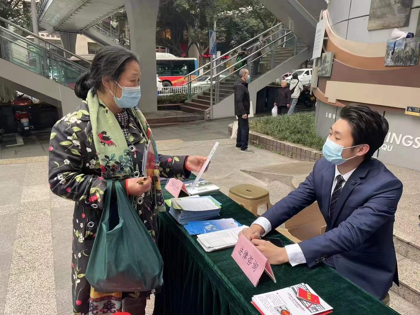彭博正在为社区居民解答法律问题