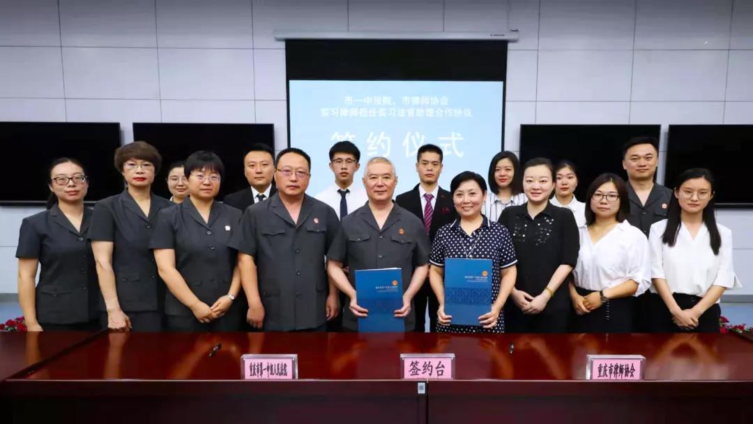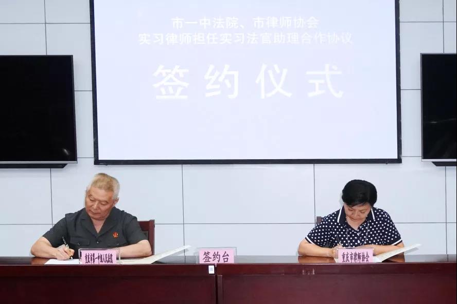 2019年8月28日上午,市律师协会联合市一中法院举行选送实习人员到法院担任实习法官助理合作协议签约仪式,即日起将有首批6名实习律师走上市一中法院实习法官助理岗位。市一中法院党组成员、副院长张国庆,市律师协会副会长徐丽霞分别代表双方签约并讲话,市一中法院党组成员、执行局局长朱文林主持仪式。