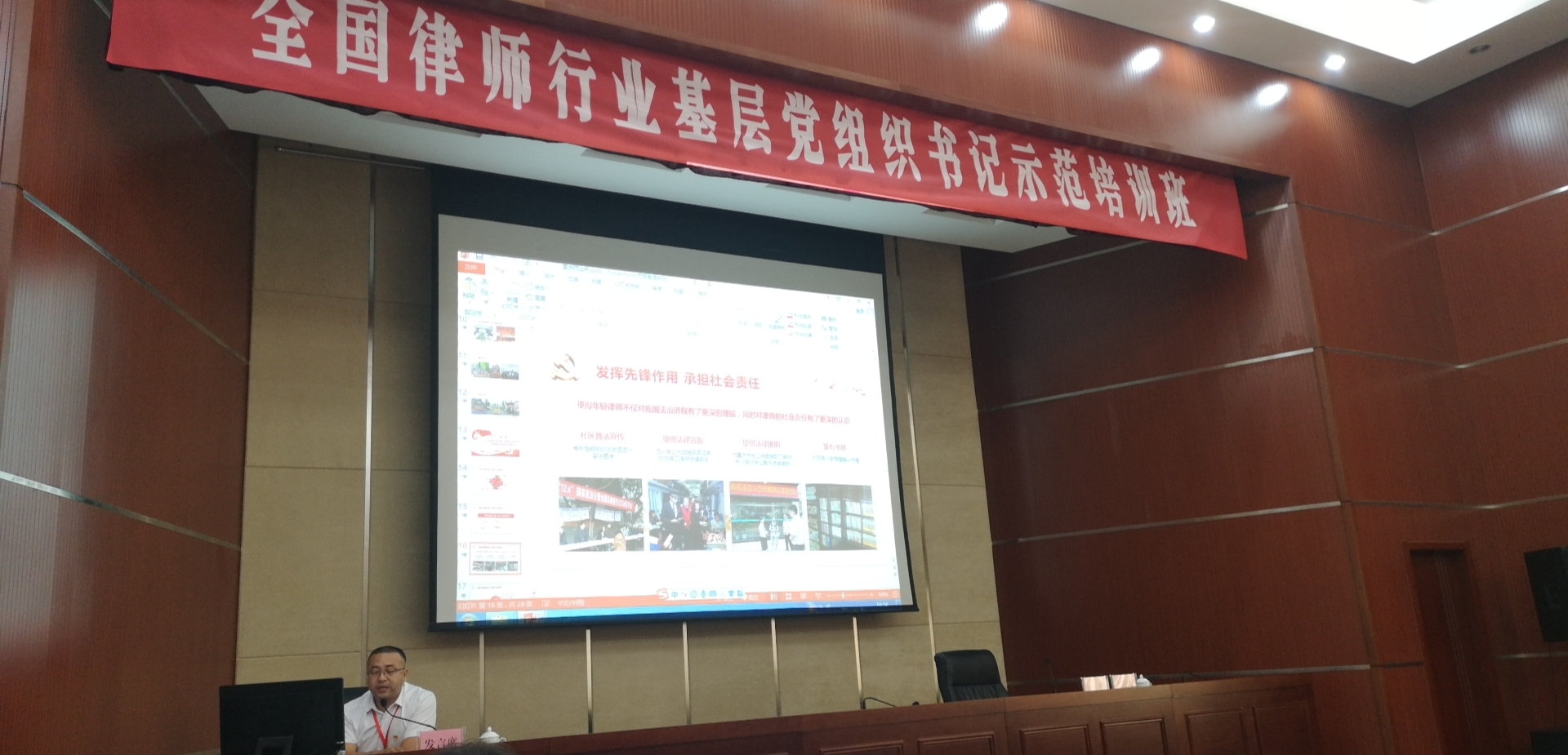 丽达律所党支部书记张凯在培训班上汇报了事务所党支部的党建工作详情。最后丽达律所党支部书记张凯表示:事务所坚持“以党建促所建”的思路和做法,全面加强律所党建,始终坚持律师工作正确方向,依法执业、诚信执业,服务好当事人,服务好社会,为律师行业党建工作和社会主义法治建设作出新贡献,以更加优异的成绩迎接新中国 70 华诞!