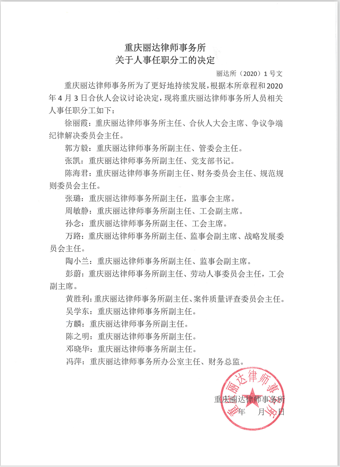 2020Äê4ÔÂ3ÈÕ£¬ÖØÇìÀö´ïÂÉʦÊÂÎñËù¾ÙÐÐÁ˺ϻïÈË´ó»áôßµÚ¶þ½ì¹Üί»á»»½ìÑ¡¾Ù»á¡£»áÒéÓÉÀö´ïÂÉʦÊÂÎñËùÖ÷ÈΡ¢ºÏ»ïÈË»áÒéÖ÷ϯÐìÀöϼÖ÷³Ö¡£×÷Ϊ2020Äê¶ÈµÚÒ»´ÎºÏ»ïÈË´ó»á£¬ËäÈ»ÒßÇéÈÔδ½áÊø£¬µ«µ²²»×¡¸÷λºÏ»ïÈ˶ÔÀö´ïËùµÄ¸ß¶ÈÔðÈθк͹éÊô¸Ð£¬ÒÔ·Ü·¢Í¼Ç¿¡¢¹²Ó®·¢Õ¹µÄ¼¤Ç飬¾ù»ý¼«²Î¼Ó±¾´Î»áÒ飬²ÎÓëÀö´ïËùµÄ¸÷Ïî¾ö²ß¡£